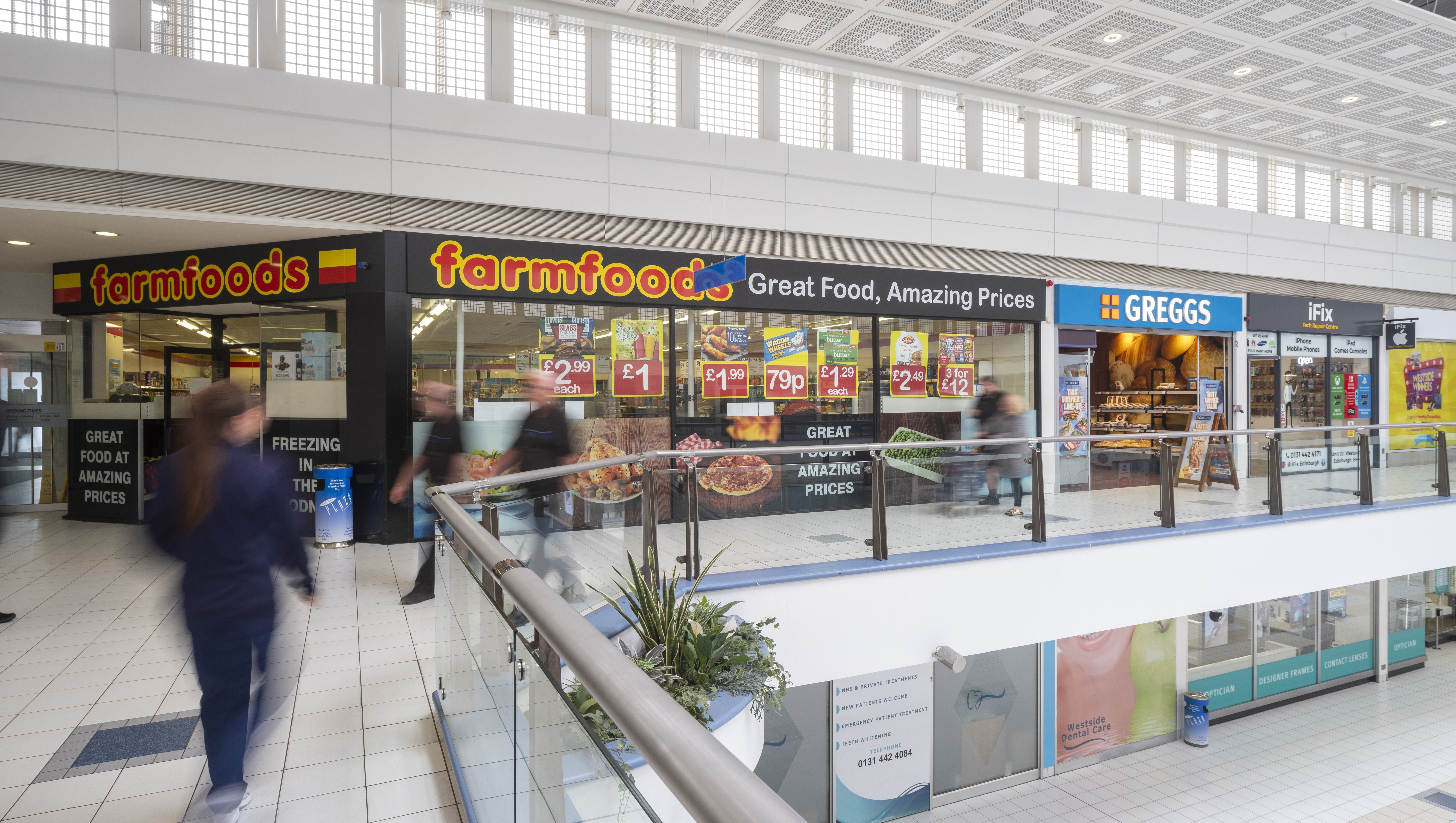 Westside Centre is a major community retail and leisure destination in Wester Hailes, Edinburgh. The centre includes national occupiers and anchors including Odeon Luxe Cinema, Home Bargains, Iceland, Farmfoods, and Airthrill. Site has had a significant redevelopment programme, covering new shopfronts, kiosk rollout, mixed-use masterplanning, and a future residential uplift.