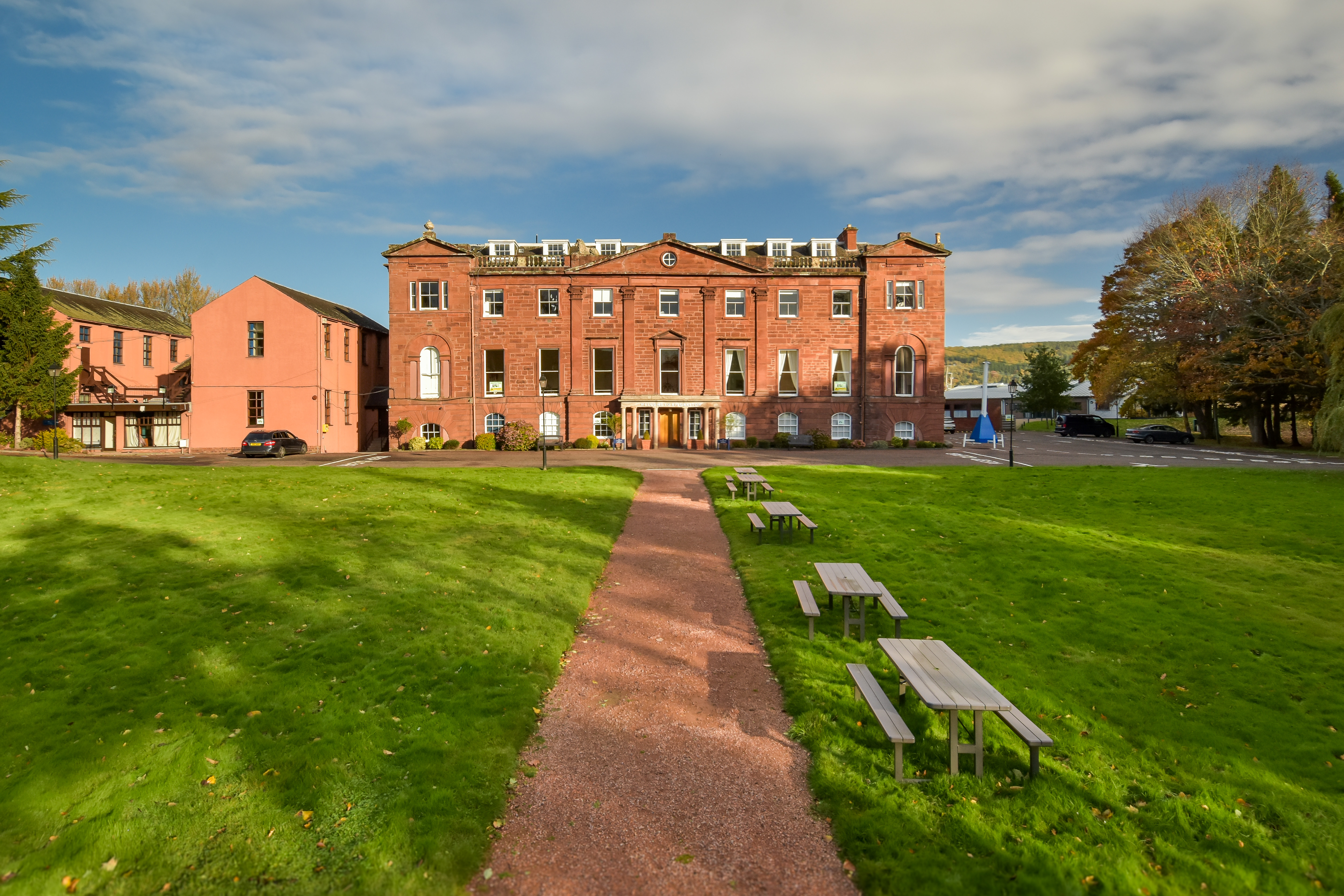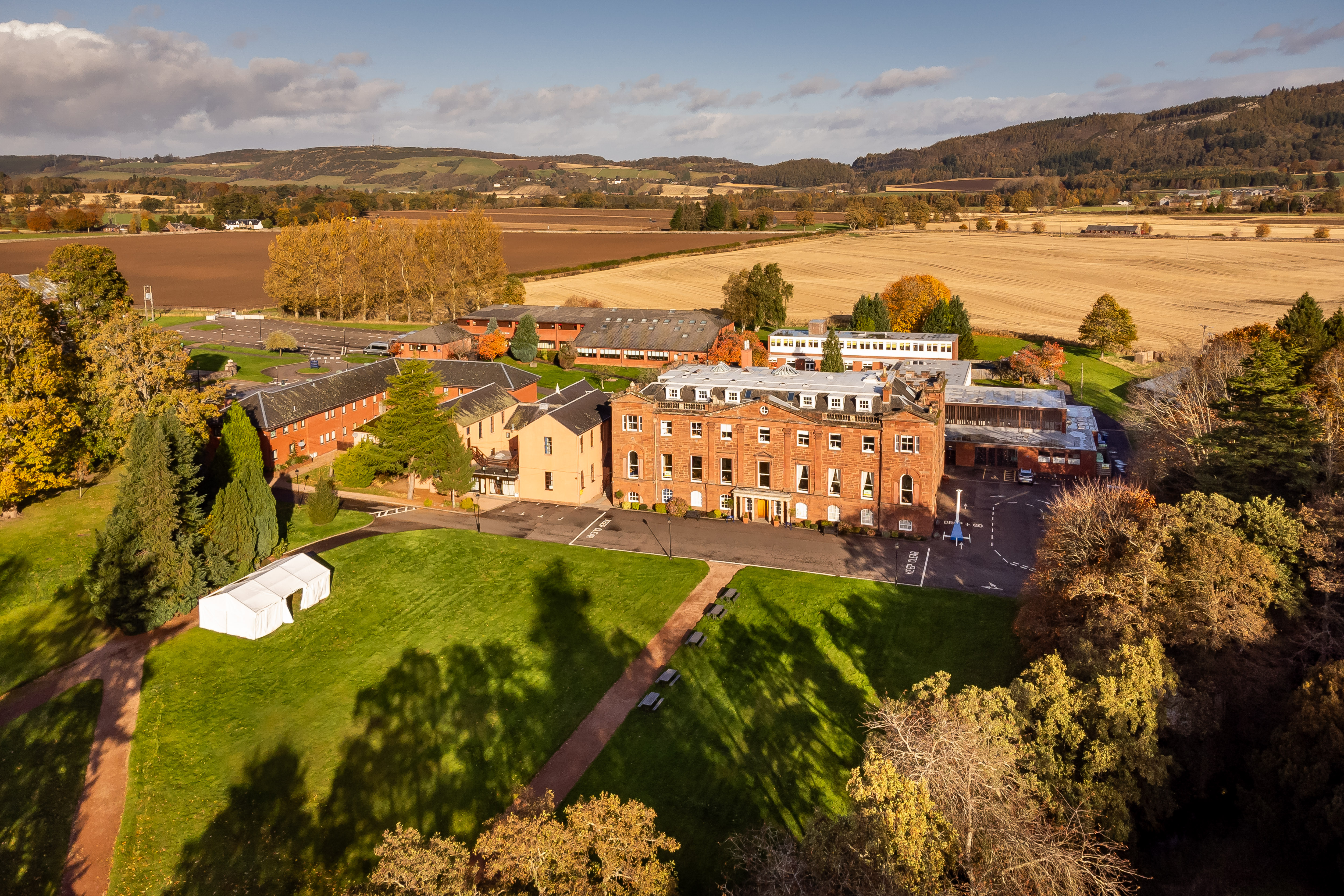 A landmark 56-acre estate located in Bridge of Earn, Perthshire. Formerly an independent boarding school, the site contains an extensive collection of high-quality buildings including the main school building, sports hall, science block, equestrian centre, boarding houses, chapel and multiple residential blocks. The estate has been acquired for a full mixed-use redevelopment, transforming the grounds into a residential-led, leisure and community destination.